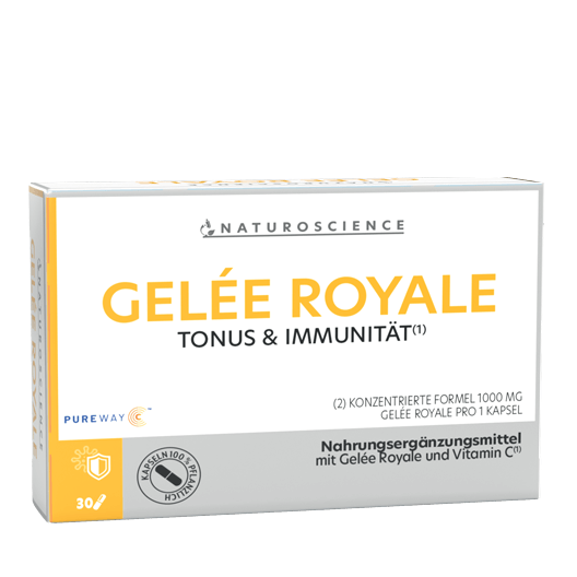 Die Gelée-Royale-Kapseln von Naturoscience bieten Ihnen die angenehmste und zuverlässigste Möglichkeit, von diesem außergewöhnlichen Naturprodukt zu profitieren – insbesondere, wenn Sie den sehr säuerlichen Geschmack der frischen Substanz nicht schätzen.